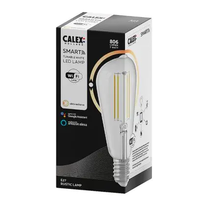 Stai cercando una lampadina smart a LED con attacco E27 di alta qualità? Allora la lampadina LED Calex Smart Rustico fa per te! Questa lampadina smart ha il comune attacco a vite E27, che la rende facile da montare, pronta all’uso e compatibile con la maggior parte di lampade e lampadari. Inoltre il vetro trasparente consente di vedere il filamenti LED all’interno, che fanno di questa lampadina un oggetto decorativo e funzionale! Come se non bastasse, risparmierai notevolmente sui costi energetici, perché questa lampadina LED consuma solo 7 Watt.
