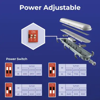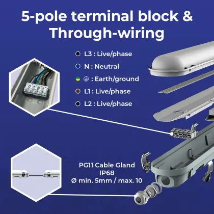 Descrizione Confezione Multipack 10x Noxion Stagna LED Poseidon V3.0 35-65W 4550-9100lm - 830-865 CCT | 150cm - Cablaggio Entra/Esci (5x2.5mm2)