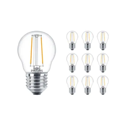 La Confezione Multipack 10x Philips Corepro LED Lustre E27 Sferica Filamento Chiara 2W 250lm - 827 Bianco Molto Caldo | Sostitutiva 25W è la perfetta sostituzione per la tua lampada convenzionale 25W con attacco E27 grazie alla sua tecnologia LED. Passare a LED ti offrirà tanti vantaggi!