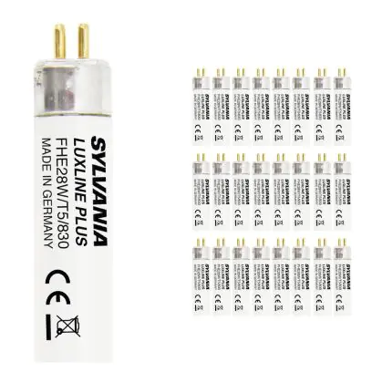 I Confezione Multipack 25x Sylvania Luxline Plus T5 28W - 830 Luce Calda | 115cm sono tubi fluorescenti di dimensioni inferiori rispetto ai T8 / TL-D. Si prega di controllare sempre la potenza e la lunghezza del tubo, in quanto sono correlati. Nel caso in cui si desideri effettuare una sostituzione di un tubo esausto è necessario acquistare un tubo con le stesse caratteristiche tecniche in termini di dimensioni e potenza. Per un elevato risparmio energetico si consiglia di scegliere soluzioni a LED..