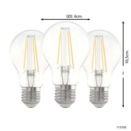 Descrizione Confezione Multipack 3x Eglo LED Pera E27 Filamento Chiara 21W 806lm - 827 Bianco Molto Caldo | Sostitutiva 60W