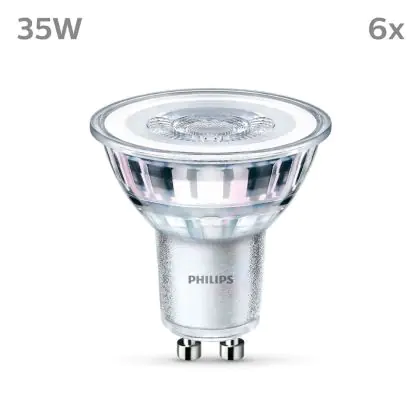 La Confezione Multipack 6x Philips Faretti LED GU10 PAR16 4W 275lm 36D - 840 Bianco Freddo è perfetta per la sostituzione della convenzionale Lampada alogena W GU10 con colore della luce 840 Bianco Freddo. Questa Lampada ha una forma Spot con un diametro di 50mm. I due perni sono distanti tra loro 10mm. Questa lampada funziona con la 220V-230V e quindi non ha bisogno di trasformatori. Passare a LED ti offrirà molti vantaggi!