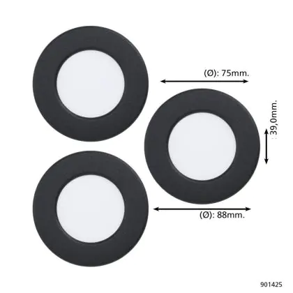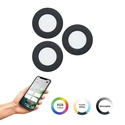 Descrizione Eglo Connect.Z Smart Incasso Faretti Illuminazione del bagno Fueva 6-Z Plastica Nero 8.4W 1020lm - 827-865 Regolabile Bianca + RGB | Dimmerabile