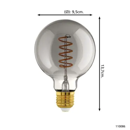 La Eglo LED Globe E27 Filamento Smokey 4W 100lm - 820 Bianco Molto Caldo | Dimmerabile - Sostitutiva 15W è la perfetta sostituzione per la tua lampada convenzionale 15W con attacco E27 grazie alla sua tecnologia LED. Passare a LED ti offrirà tanti vantaggi!