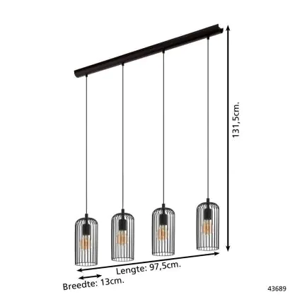 Eglo Luce Pendente Roccamena 1 Acciaio Nero | Adatto per 4x E27
