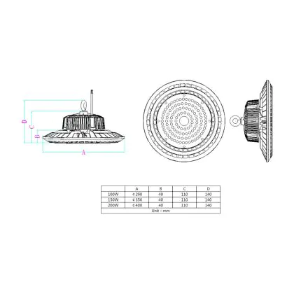 Questo apparecchio LED da 150W può essere usato per sostituire gli apparecchi tradizionali da 450W. Ciò comporta un risparmio energetico di circa il 70% che permette di recuperare il prezzo di acquisto molto velocemente.