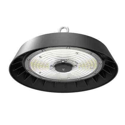Descrizione Highbay LED ALBIOR Acciaio Nero 150W 25500lm 90D - 740 Bianco Freddo | IP65 - con Sensore di movimento e luce