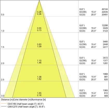 L'apertura del fascio luminoso indica l'angolo del fascio di luce proveniente da una lampada o lampadina. Si misura in gradi (D) e più piccolo è l'angolo, più piccola è l'apertura del fascio di luce.