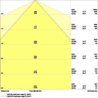 L'apertura del fascio luminoso indica l'angolo del fascio di luce proveniente da una lampada o lampadina. Si misura in gradi (D) e più piccolo è l'angolo, più piccola è l'apertura del fascio di luce.