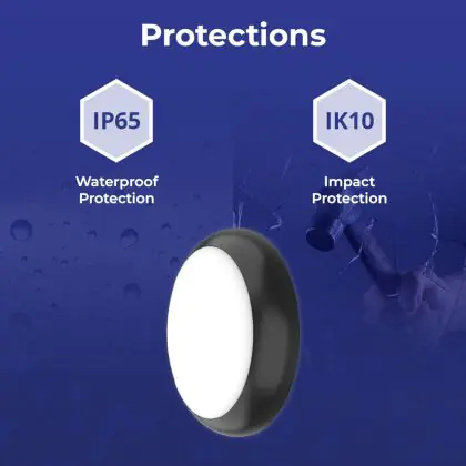Un elemento importante delle plafoniere e delle applique LED è il loro livello di proezione IP, che indica la protezione contro l'ingresso di polvere e umidità/acqua. A partire da IP65, un apparecchio di illuminazione è a prova di polvere e acqua. Il valore IP di questa plafoniera LED è: IP65. Stai cercando una plafoniera LED per esterni? Allora presta attenzione alla protezione da urti e impatti, ovvero il valore IK, che per questa lampada è IK10 - 20 Joule.