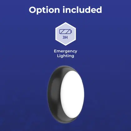 Descrizione Noxion Bulkhead LED Pro V2 Bianca 12/16/20W 2400lm - 830-840-865 CCT | 325mm - IP65 - Emergenza 3H + Il Anello Nero