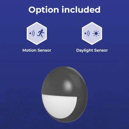 Noxion Bulkhead LED Pro V2 Bianca 12/16/20W 2400lm - 830-840-865 CCT | 325mm - IP65 - Sensore di Movimento e Luce + Palpebra Il Anello Nero