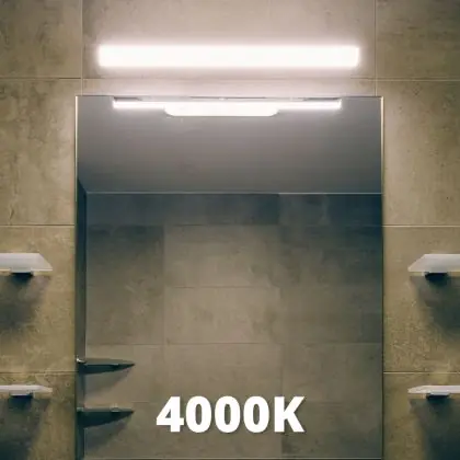 La temperatura di colore di questo apparecchio è 4000K - Bianco Freddo. Per le aree in cui la luce naturale è scarsa o assente, consigliamo una temperatura di colore di 6500 Kelvin, ovvero luce bianca come quella del giorno. La luce di 4000 Kelvin (bianco freddo) è una tonalità naturale e si adatta a molte situazioni lavorative e di studio. Una temperatura di colore di 3000 Kelvin (bianco caldo) è perfetta per spazi come un ingresso, un corridoio, una tromba delle scale o una galleria.