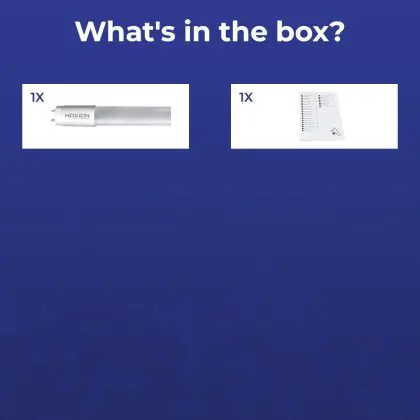 Il diametro è uguale a un normale tubo fluorescente. Il colore della luce è 4000K - Bianco Freddo, anche conosciuto come 840 Bianco Freddo. Questo fa si che questo tubo sia perfetto per illuminare sale ed ambienti lavorativi, garages e fabriche.