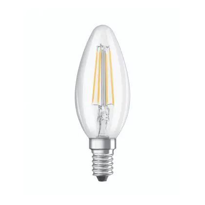 La lampada Osram Classic LED E14 Candela Filamento Chiara 4W 470lm - 927 Bianco Molto Caldo | Miglior resa cromatica - Dimmerabile - Sostitutiva 40W è il sostituto perfetto per le tue vecchie lampade 40W con attacco a vite piccolo E14 grazie alla sua tecnologia LED. Passare a LED ti offrirà molti vantaggi!