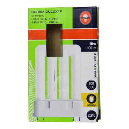 Le Osram Dulux F 18W/840 sono lampade fluorescenti compatte che presentano una potenza pari a 18W. Le stesse sono poi dotate di attacco a 4 pin (perni). I vantaggi di tali lampade sono diversi: oltre alla lunga vita é importante ricordare l'alta efficienza luminosa.