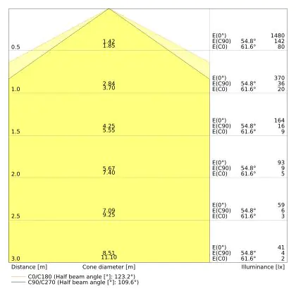 Il codice colore è una combinazione di resa cromatica (CRI) e colore della luce (Kelvin). La prima cifra indica la resa cromatica (1 = resa del colore molto bassa, 9 = massima resa del colore), mentre la seconda e la terza si riferiscono al colore della luce. Esempio: il codice colore 830 indica una buona resa cromatica (8) e luce bianca calda (3000K). |