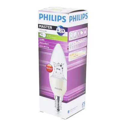 Descrizione Philips MASTER LED Candela Corona Chiara E14 6W 470lm - 822-827 Dim To Warm | Dimmerabile - Sostitutiva 60W