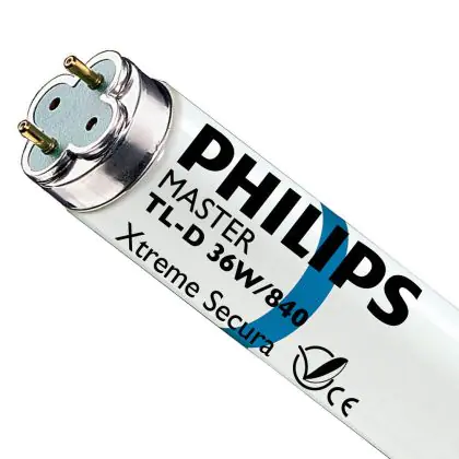 I Philips TL-D Xtreme Secura 36W 840 - 120cm (MASTER) sono tubi fluorescenti da 120cm caratterizzati da una potenza di 36W e provvisti di attacco G13 che rientrano nella classe energetica 'A'. Questi tubi sono dotati di un rivestimento che evita, in caso di rottura accidentale della lampada, che i componenti della stessa si disperdano nell'ambiente. La vita dei medesimi é molto lunga, in media di 79.000 ore, e l'indice di resa cromatica si pone nell'intervallo di 80-89Ra. I tubi fluorescenti in questione, grazie alla temperatura di colore di 4000K, emettono una luce bianca fredda.