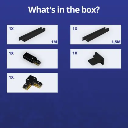 | Nome del fabbricante | Complete L shaped 1-Phase Track Set Black - 1 x 1,5 meter incl. End Cap, Power Connector and L -Con | |